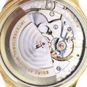 スイス・シャウハウゼンにアメリカ資本で創設されたインターナショナル社は堅実な時計製造とある意味アメリカ的な量産式製造方法とは違った、スイス式時計製造で世界でも有数の時計メーカーへと成長遂げました。1960年代後期の機械時計メーカーを襲った所謂クォーツショック、電池時計が主流となって行く事が徐々に明らかになった時を境に、機械時計をより進化させ続けたメーカーと電池時計にシフトする、または品質を下げてその後の電池式時計の価格変動に対応したメーカーの差は後の時計メーカーとしての「信頼」に大きく差をもたらしました。 機械時計をひたすら作り続けたメーカーは今日一流のメーカーとして堅実な語りえる伝統を残しております。 インターナショナル社はクォーツショックに対して、自動巻きを進化させ続けたり、インジュニアモデルのように耐磁機能として最高の機能を追い求めたメーカーです。 今日有数の機械式時計メーカーとして評価されているのはそうした積み重ねの結果と云えます。 この時計はインターナショナル社の自動巻きの当時の技術責任者、アルバート・ペラトン氏が開発した独自の自動巻き機構(後にペラトン方式と呼ばれる)の一つです。現在の殆どのメーカーが切替車を使用した巻き上げ方式を採用している機構において、切り替え車の摩耗が将来的に必須であることに対して、アーム巻き上げ方式としたこの機構は同社ならではの優れた自動巻き機構といえます。 インターナショナル社の紳士用自動巻きキャリバーの変遷でお話しますと、キャリバー81が1950年頃完成したと言われておりますが、殆ど見る事の少ないキャリバーと云えますのであまり多くは作られなかったものと思われます。 続いて85(1950年)、852(1952年)、8521(1953年・末尾1はカレンダー機能付き)、853(1958年)、8531(1959年)、854(1964年)、8541(1964年)と続きました。このキャリバー853は1957年から1962年までに約8万個製造されたキャリバーとなります。852、853、854とほぼ同じ構造のものですが、853は852のキャリバーのバランスホイールに改良が施されたものとなります。 ゴールドのケースに文字盤インデックス、針がホワイト系仕様と少し様変わりの時計ですが、全体に初期の同社の自動巻きの典型的な上品なデザインとなっております。